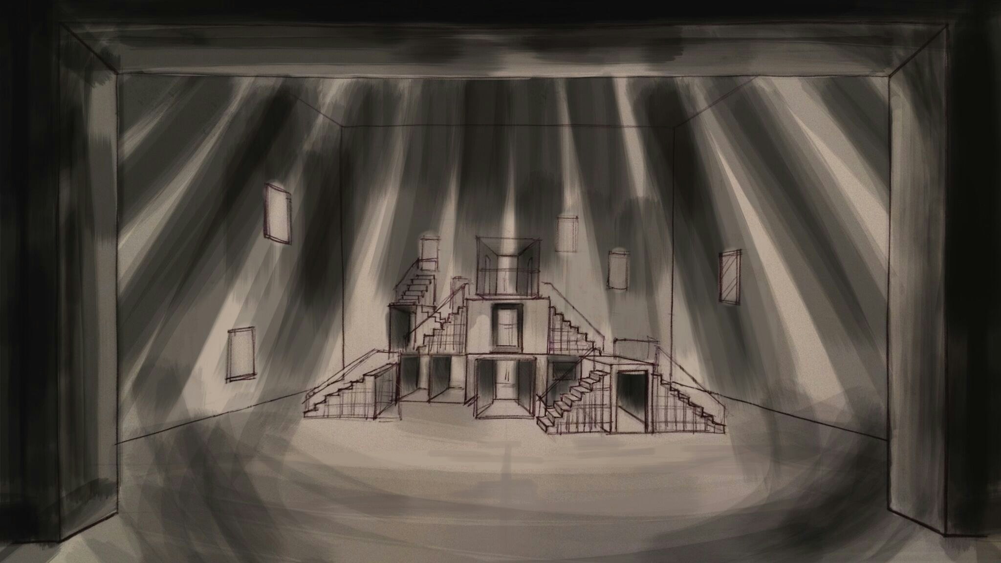 The starting point was the musical films from Hollywood Golden Era, Fred Astaire & Ginger Rogers, but i must recognise that my main influence was the art of M. C. Escher.